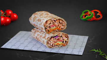 Chicken, tomatoes, jalapeños, pickles, ice berg lettuce, carrot, onions, garlic sauce, homemade red sauce, lavash.